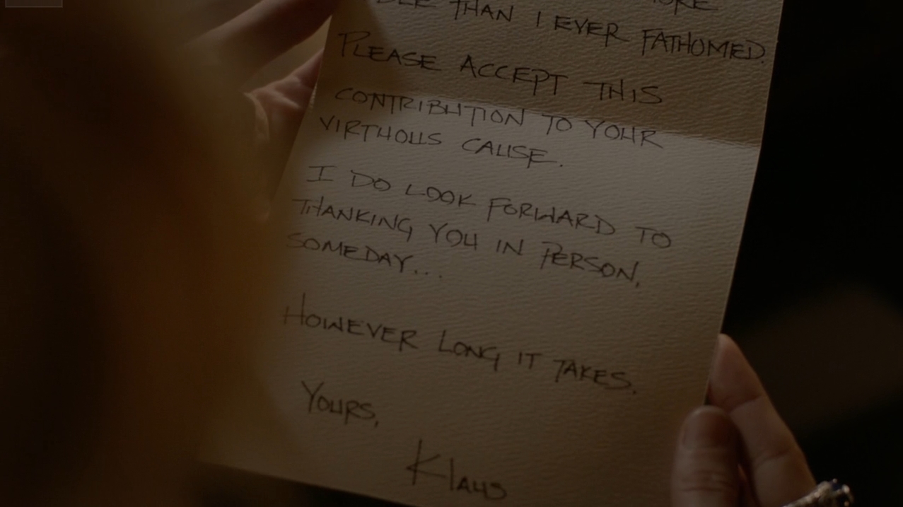 Caroline, rămasă văduvă mult prea devreme, îndeplinește ultimul vis al soțului său Stefan și deschide împreună cu Alaric o școală pentru copii speciali, asemeni gemenelor sale. Ea primește o donație neașteptată, din partea unui vechi prieten…Klaus. Mă bucur mult că l-au amintit acum la final, chiar și așa indirect. Caroline înțelege motivele lui Stefan încă de când Alaric îi comunică ceea ce a ales acesta să facă. Deși este dureros pentru ea, știe că astfel Stefan și-a găsit pacea.